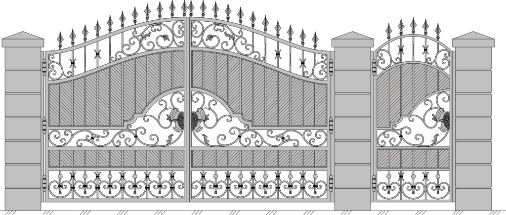 - Кованые ворота - кованые ворота бывают разного ажурного стиля и вида. Кованые ворота распашные, имеют два вида открывания, один из них ручной, а другой с автоматическим механизмом (автоматика).